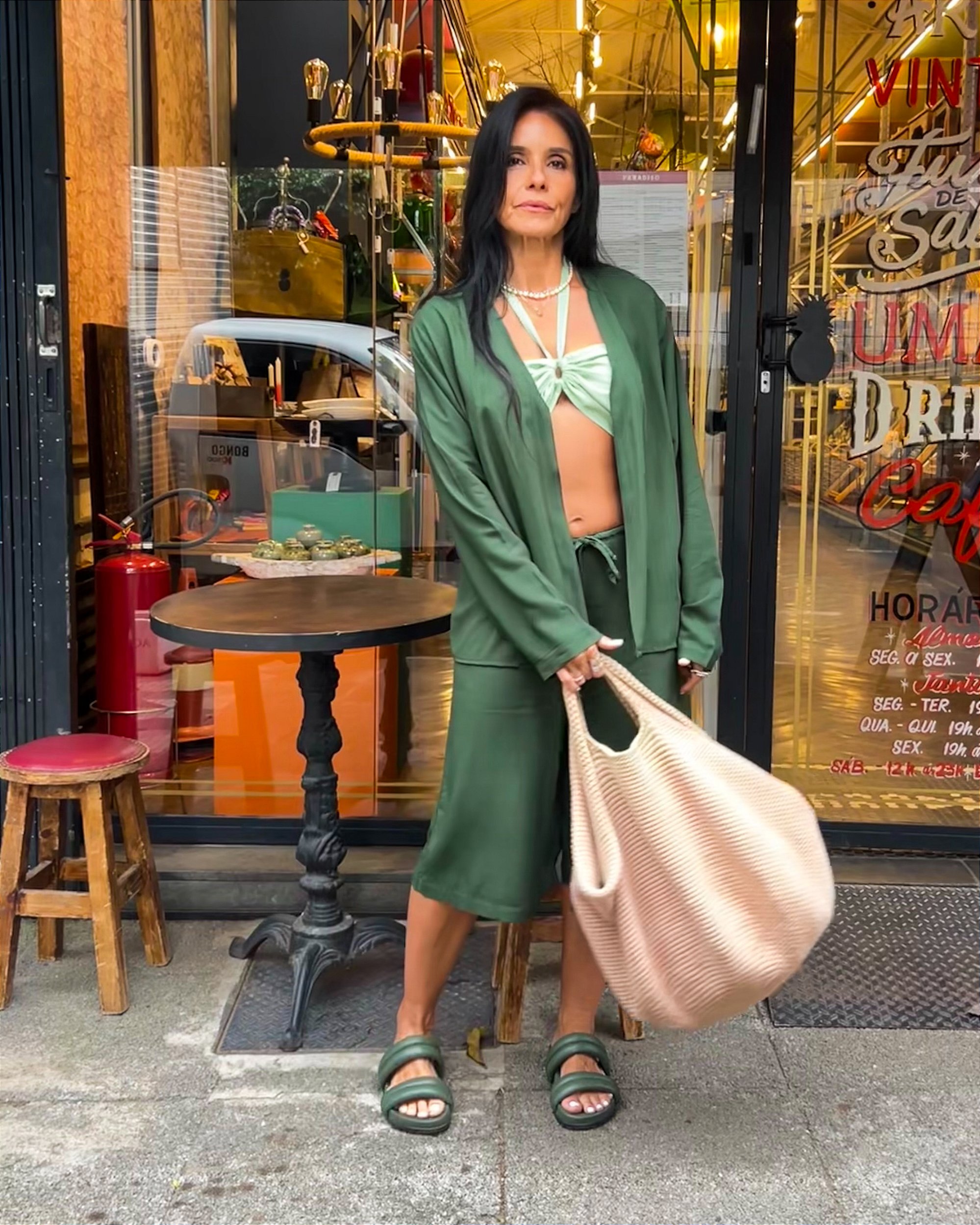 Bermudona, bermudão ou bermuda! Use da cintura alta até a cintura baixa sem medo de ser feliz, o corte foi inspirado na silhueta das modelagens das calças populares japonesas.